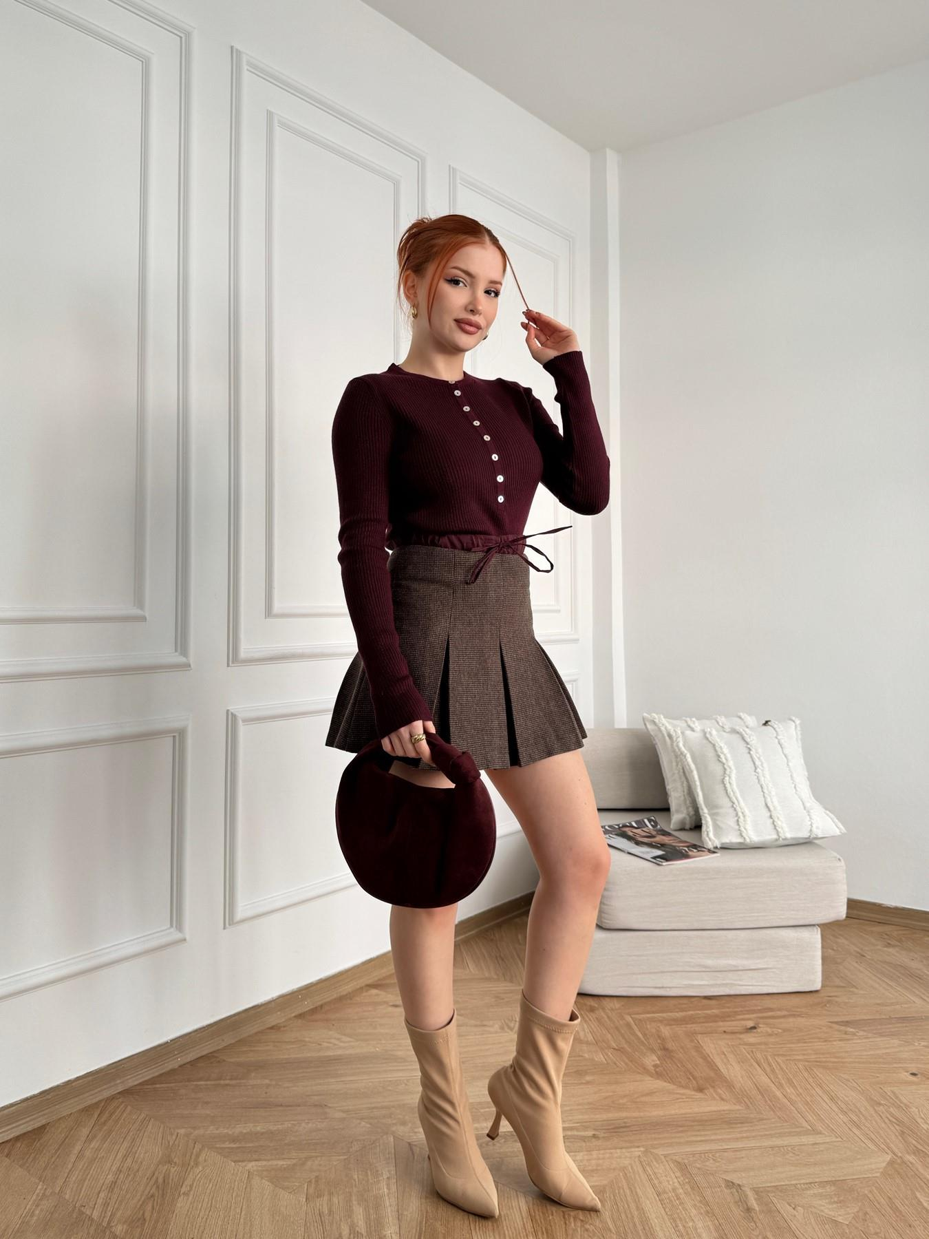 Beli Bağlamalı Kaşe Etek Kahve