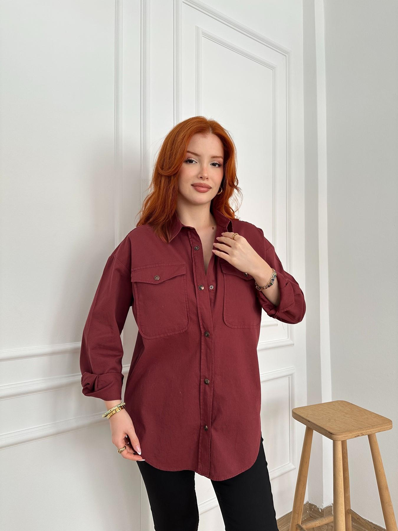 Çıtçıtlı Çift Cepli Gömlek Bordo