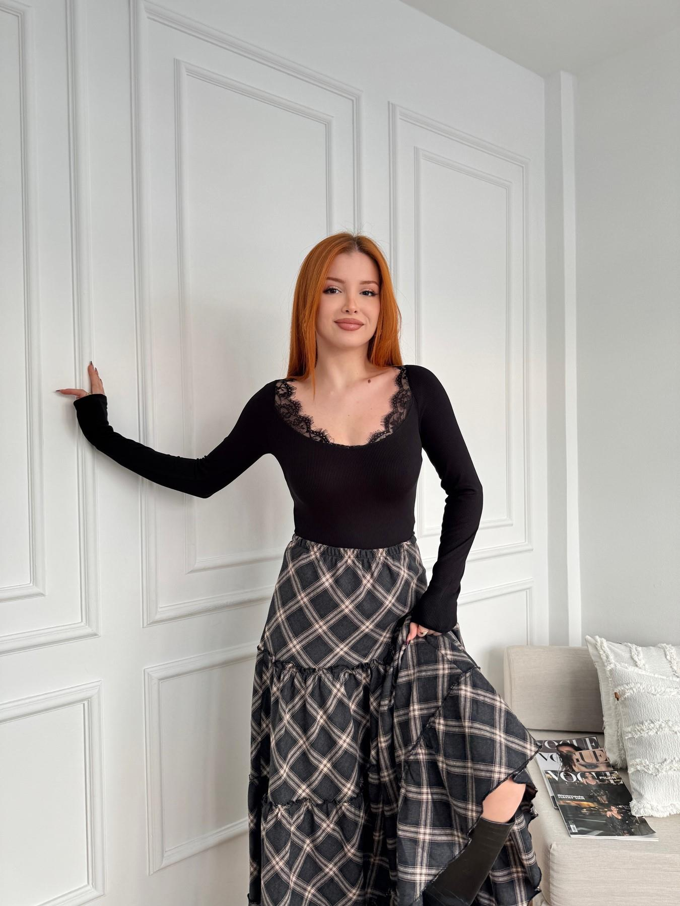 Dantel Detaylı Uzun Kol Bluz Siyah