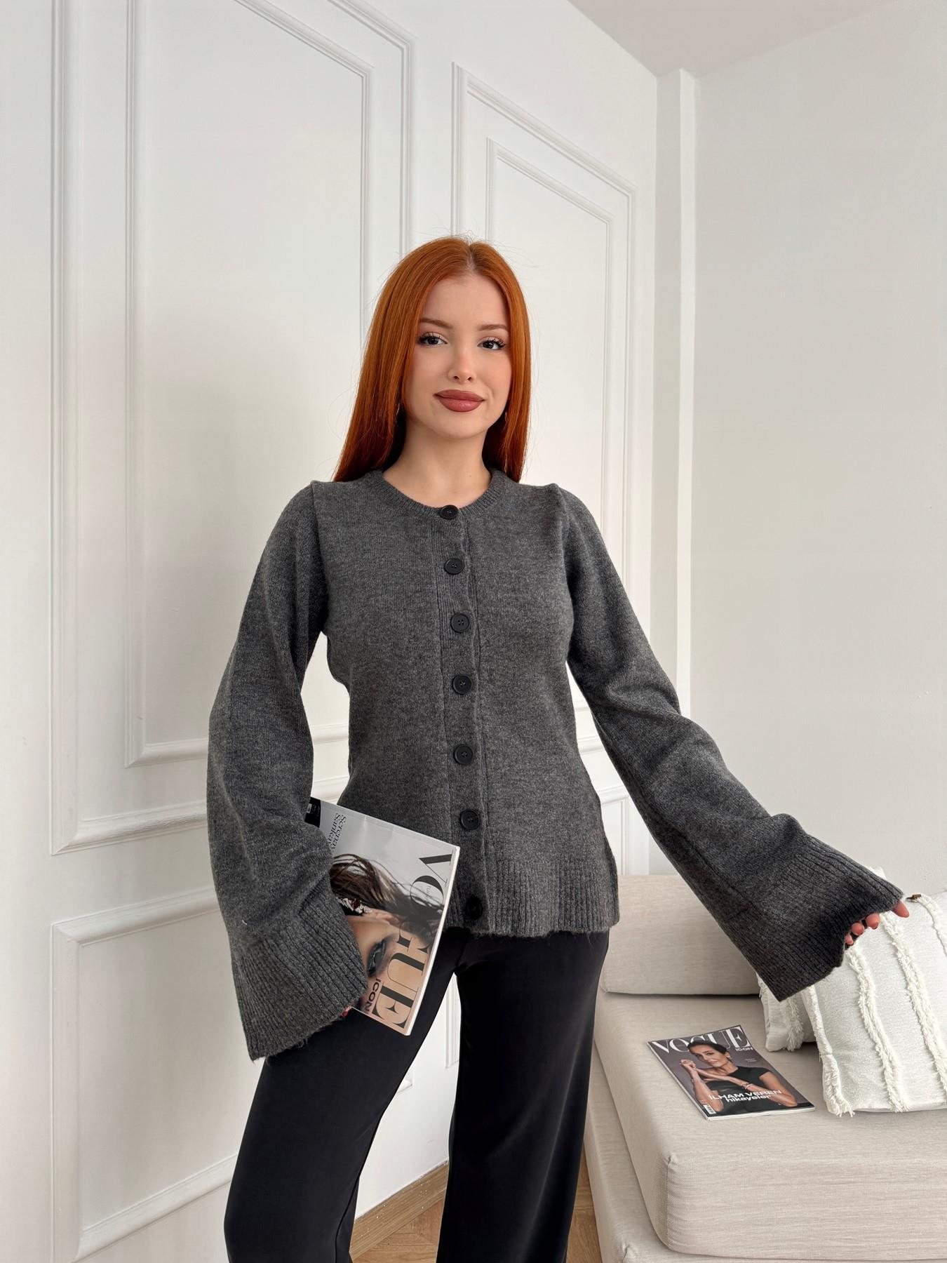 Düğmeli Uzun Kollu Hıkra Antrasit