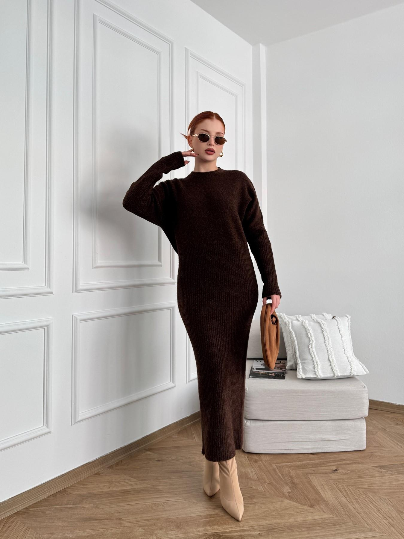 Kolları Ve Eteği Ribana Desen Uzun Elbise Kahve melanj