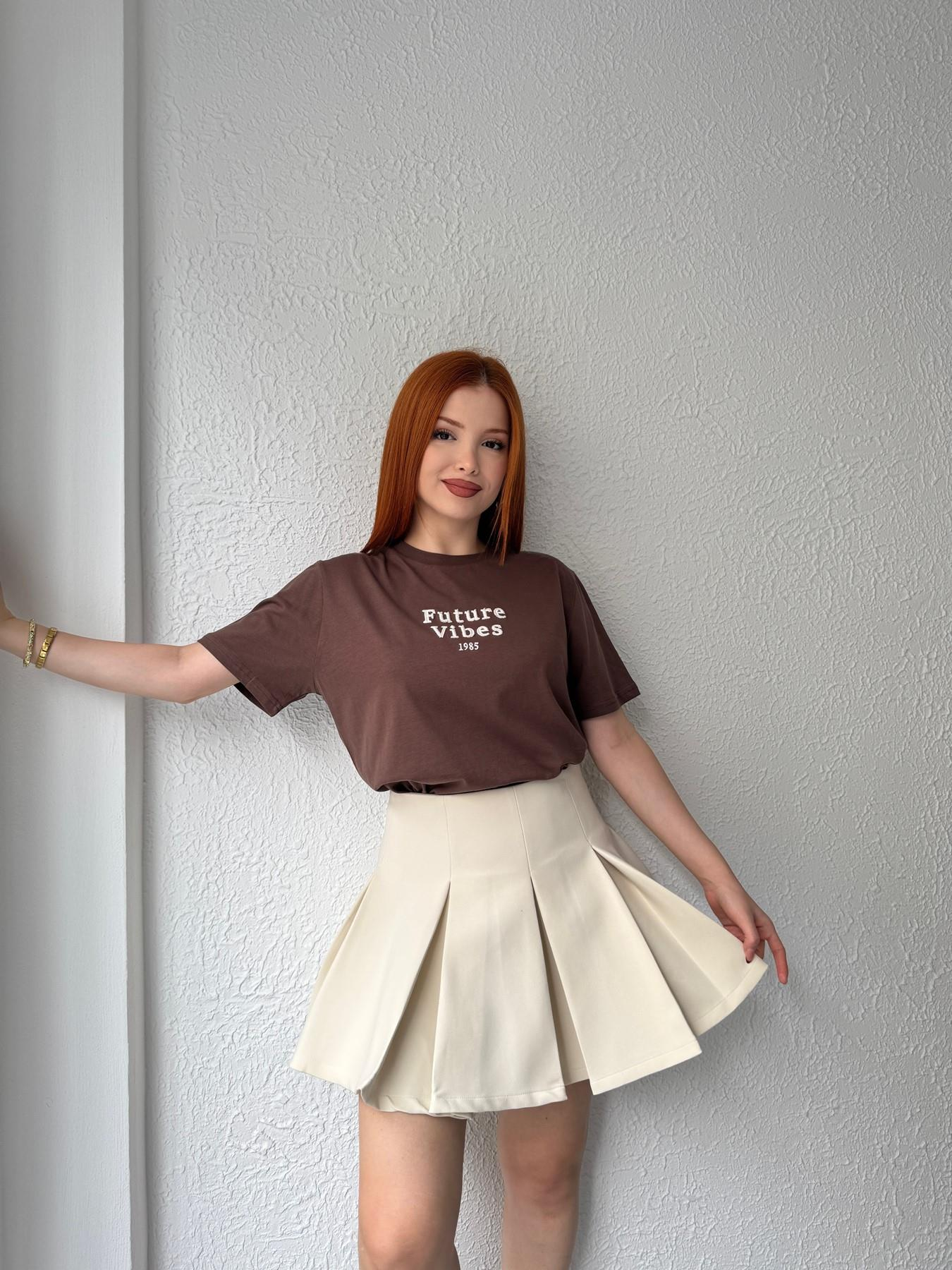 Nakış Detay Tişört Kahve