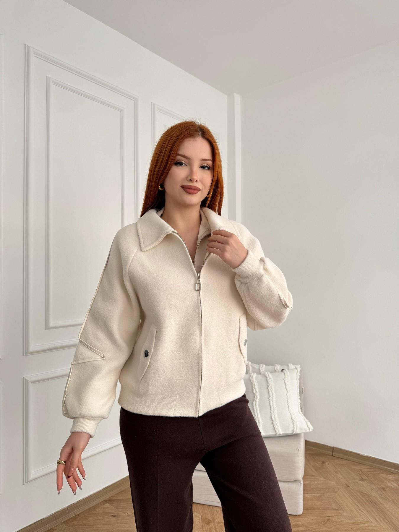 Polo Yaka Fermuarlı Yumoş Hırka Vanilya