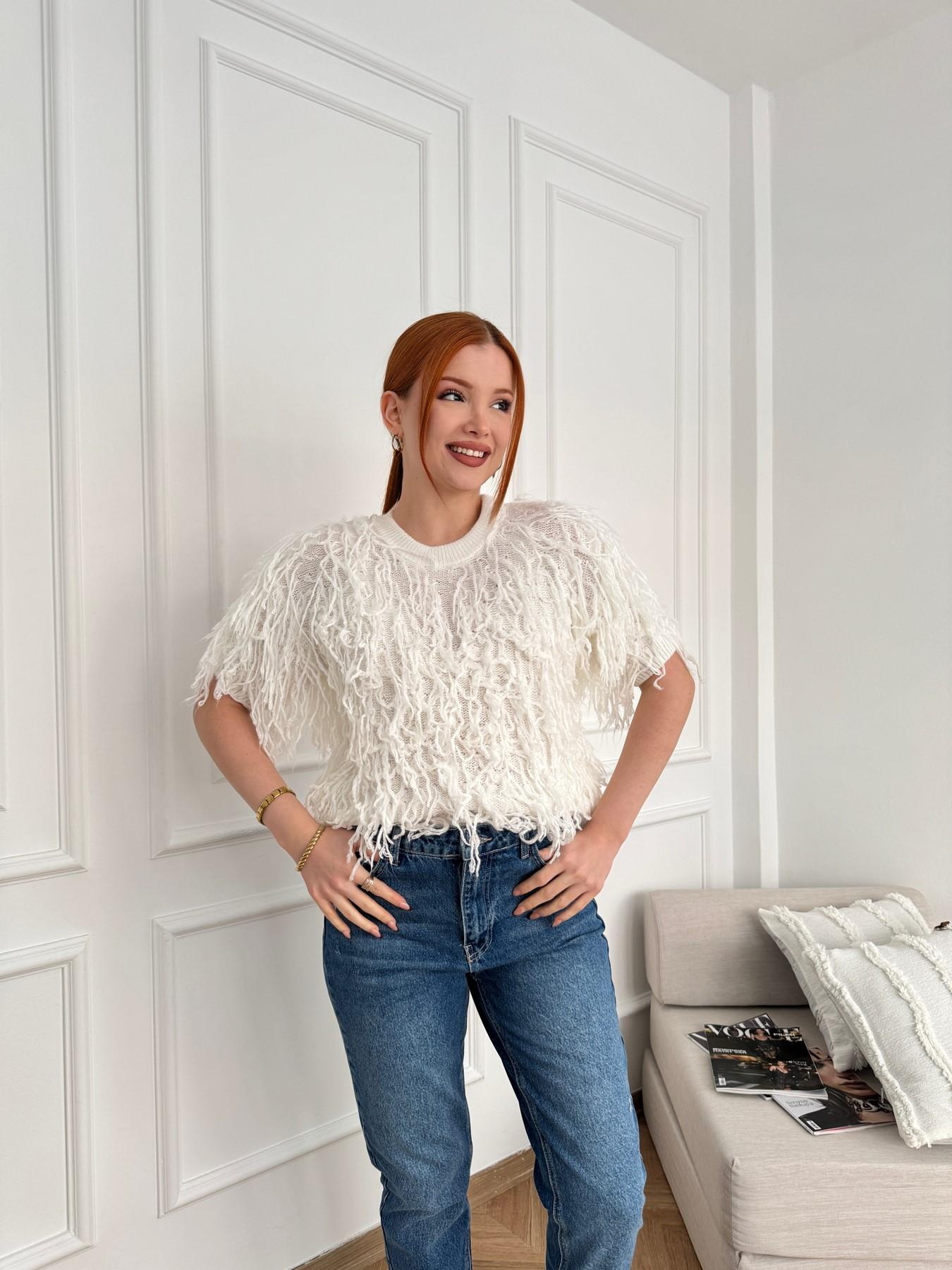 Püsküllü Triko Kazak Ekru